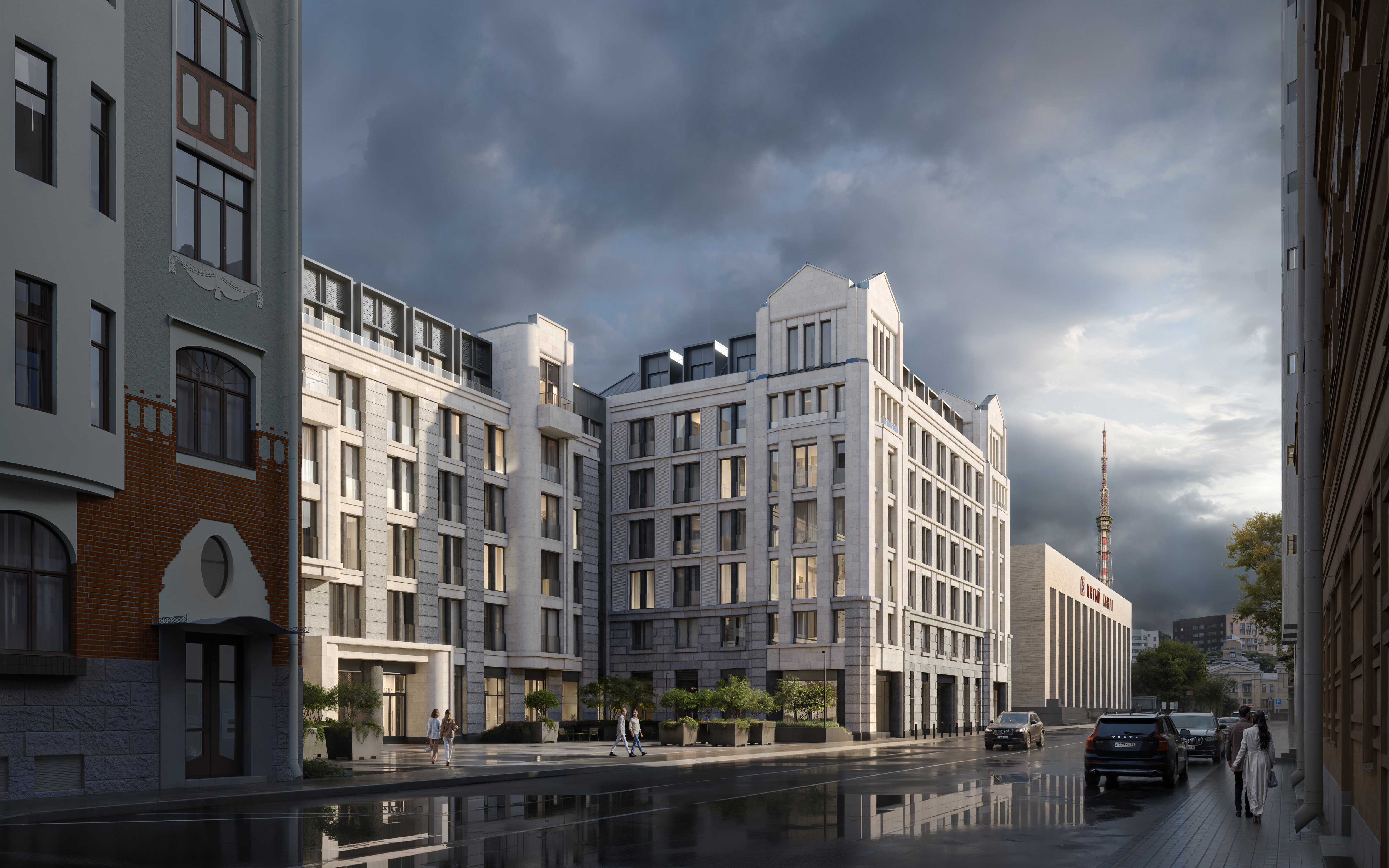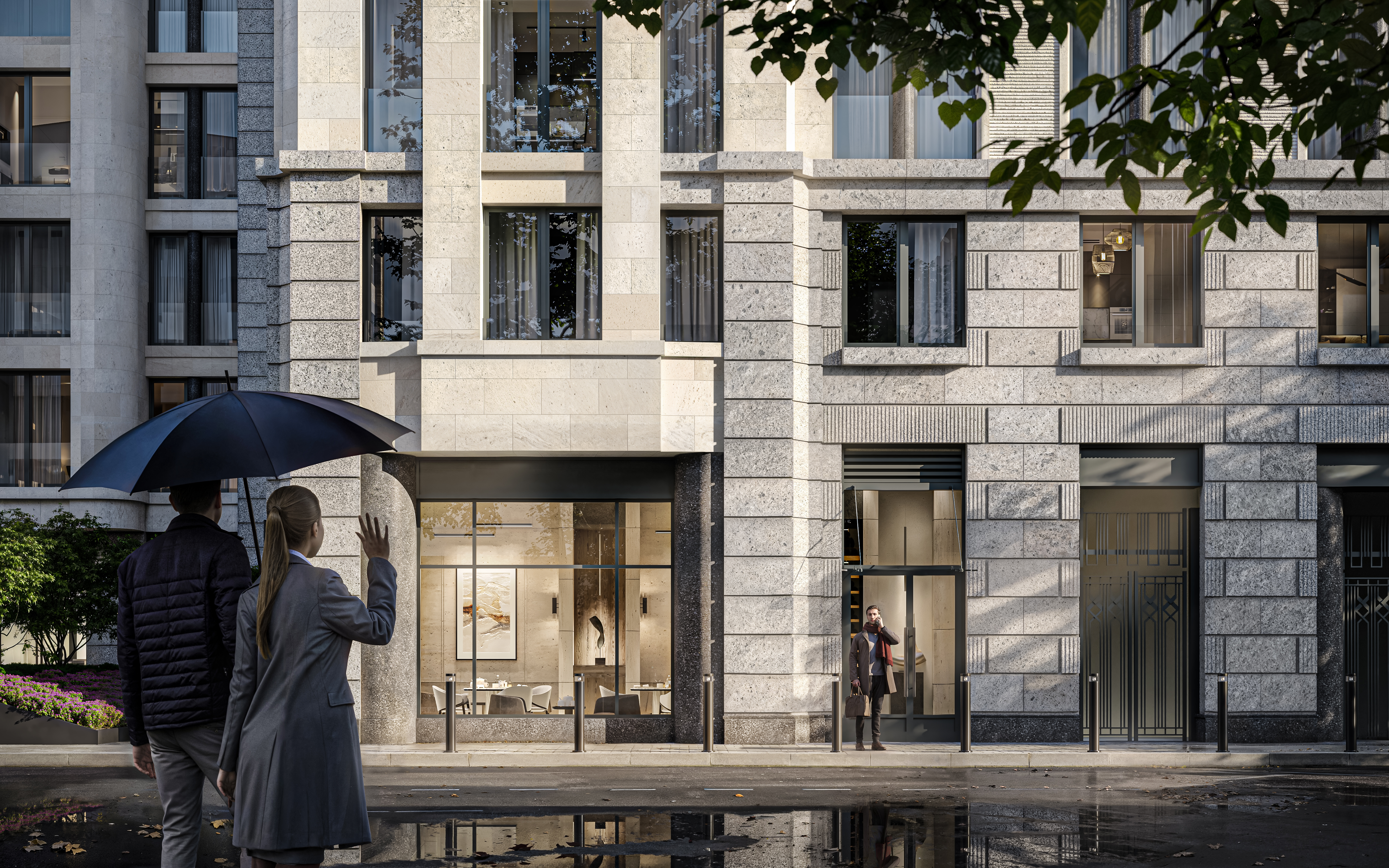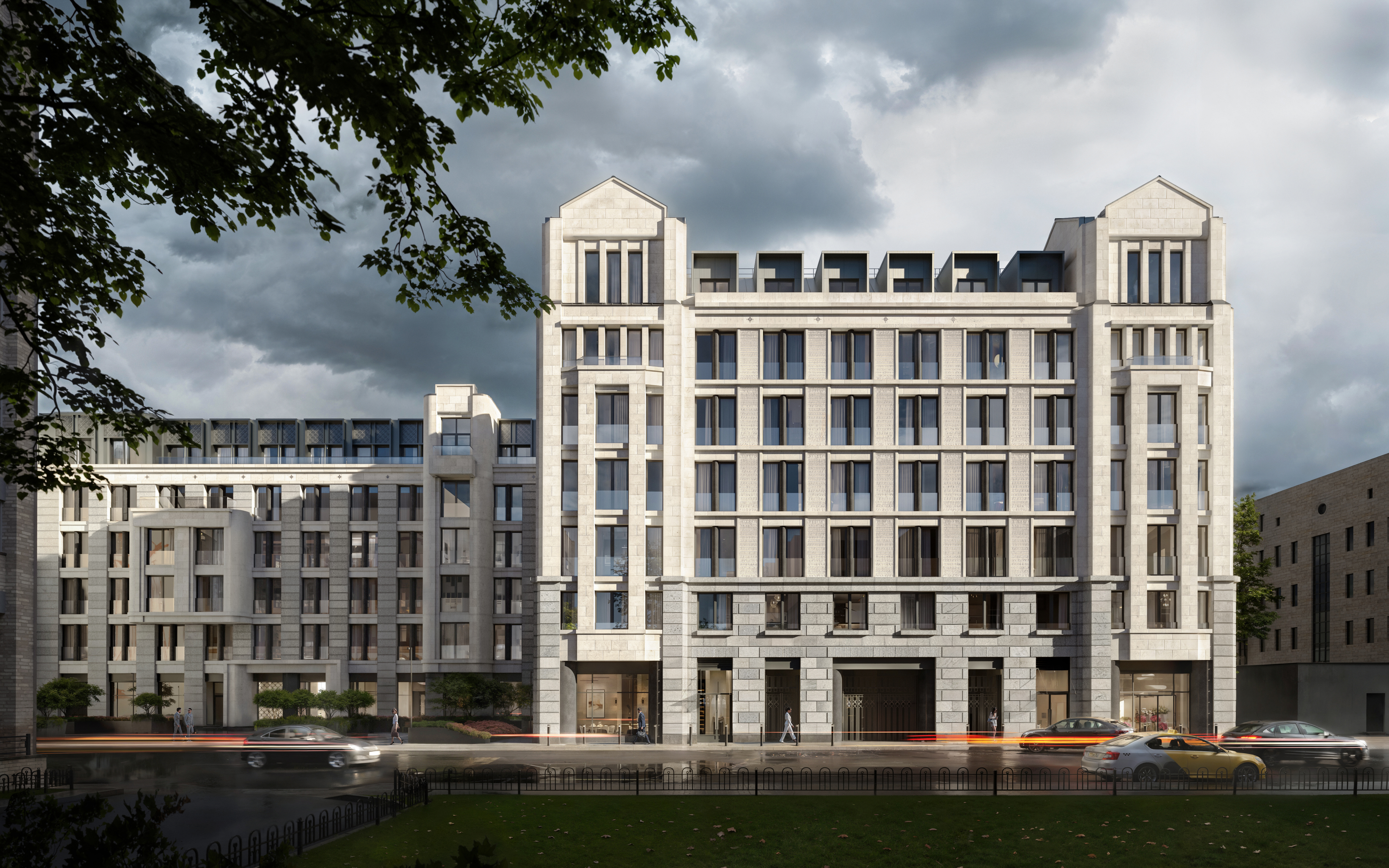 Клубный дом гармонирует с окружающими зданиями эпохи модерна.