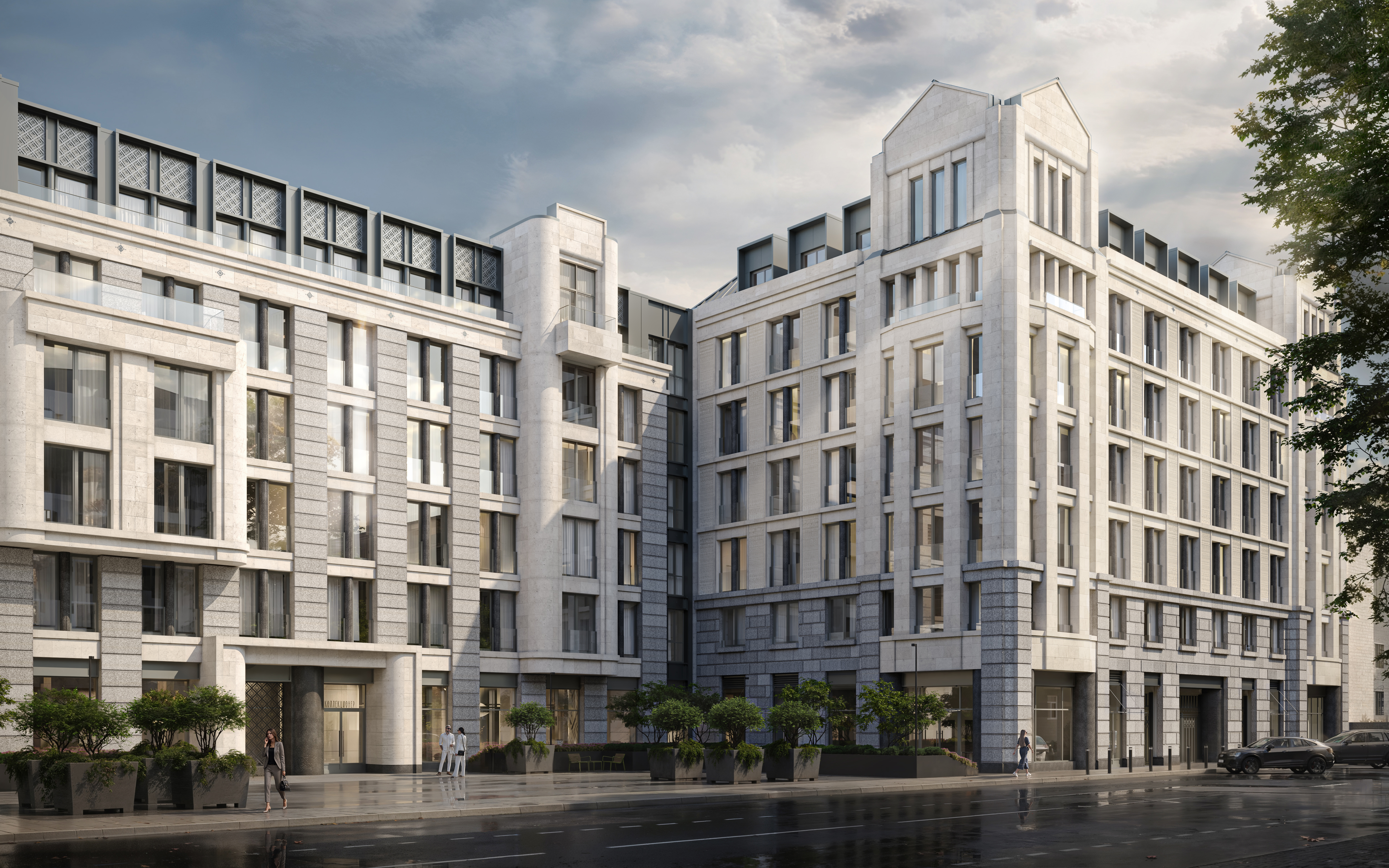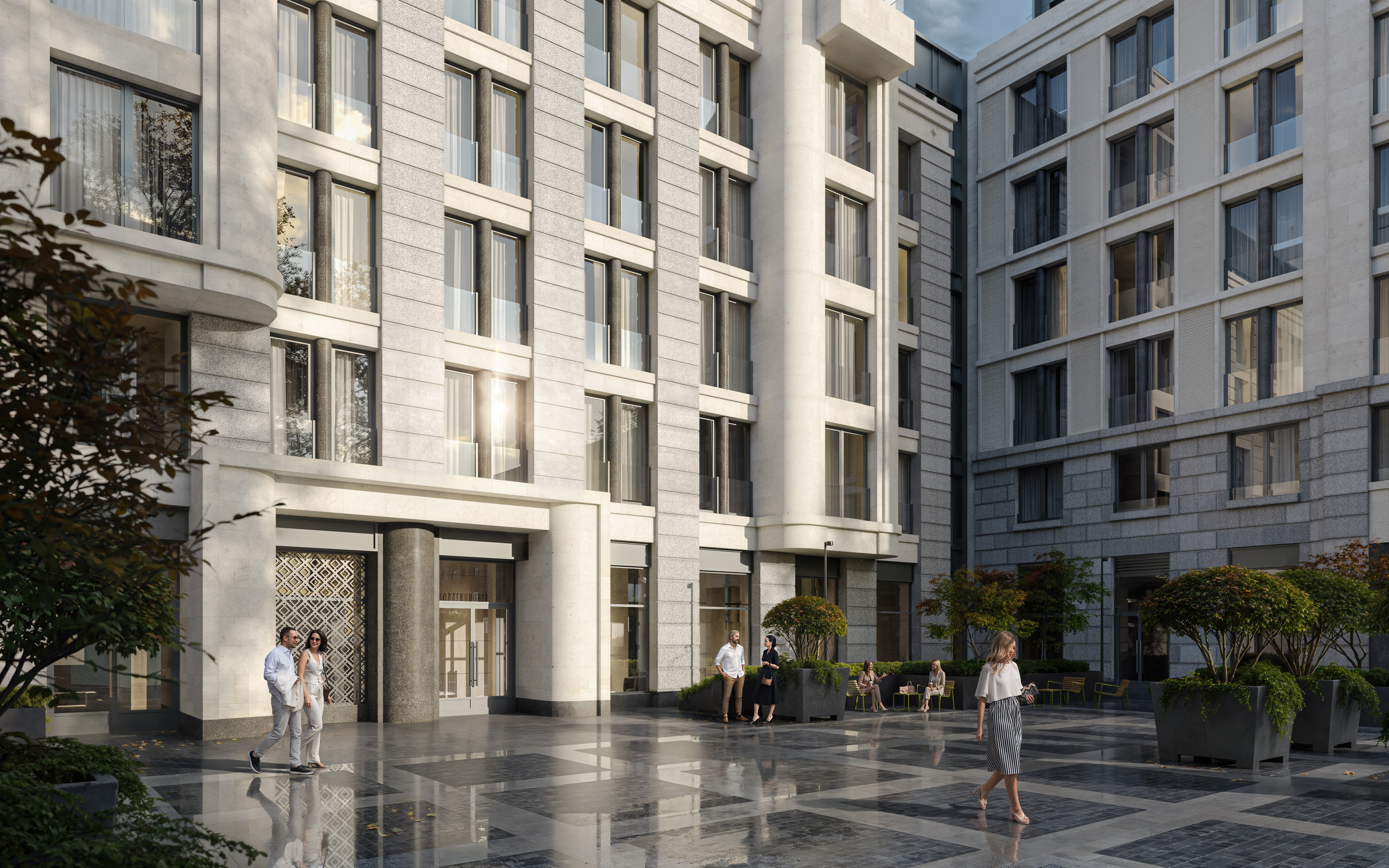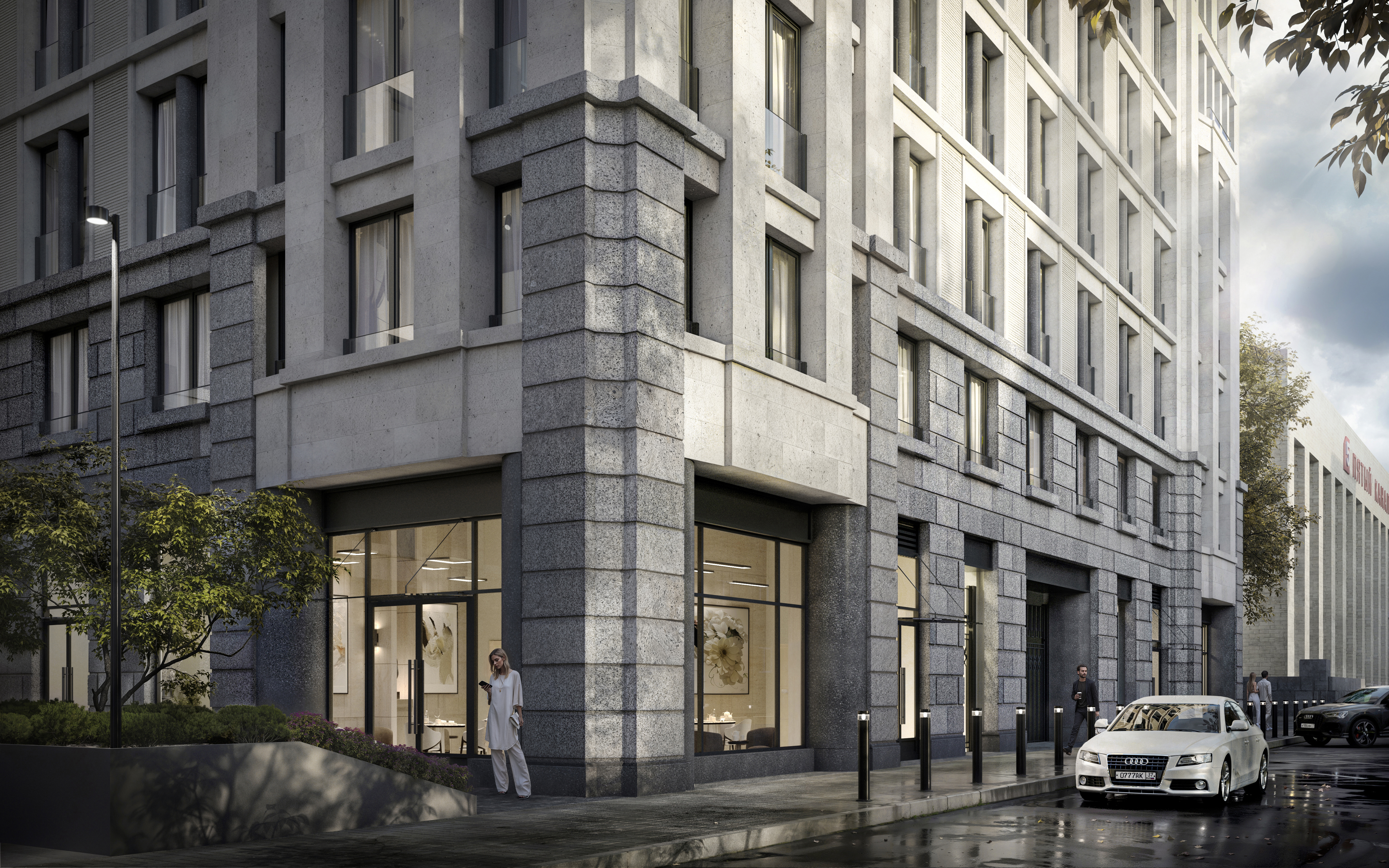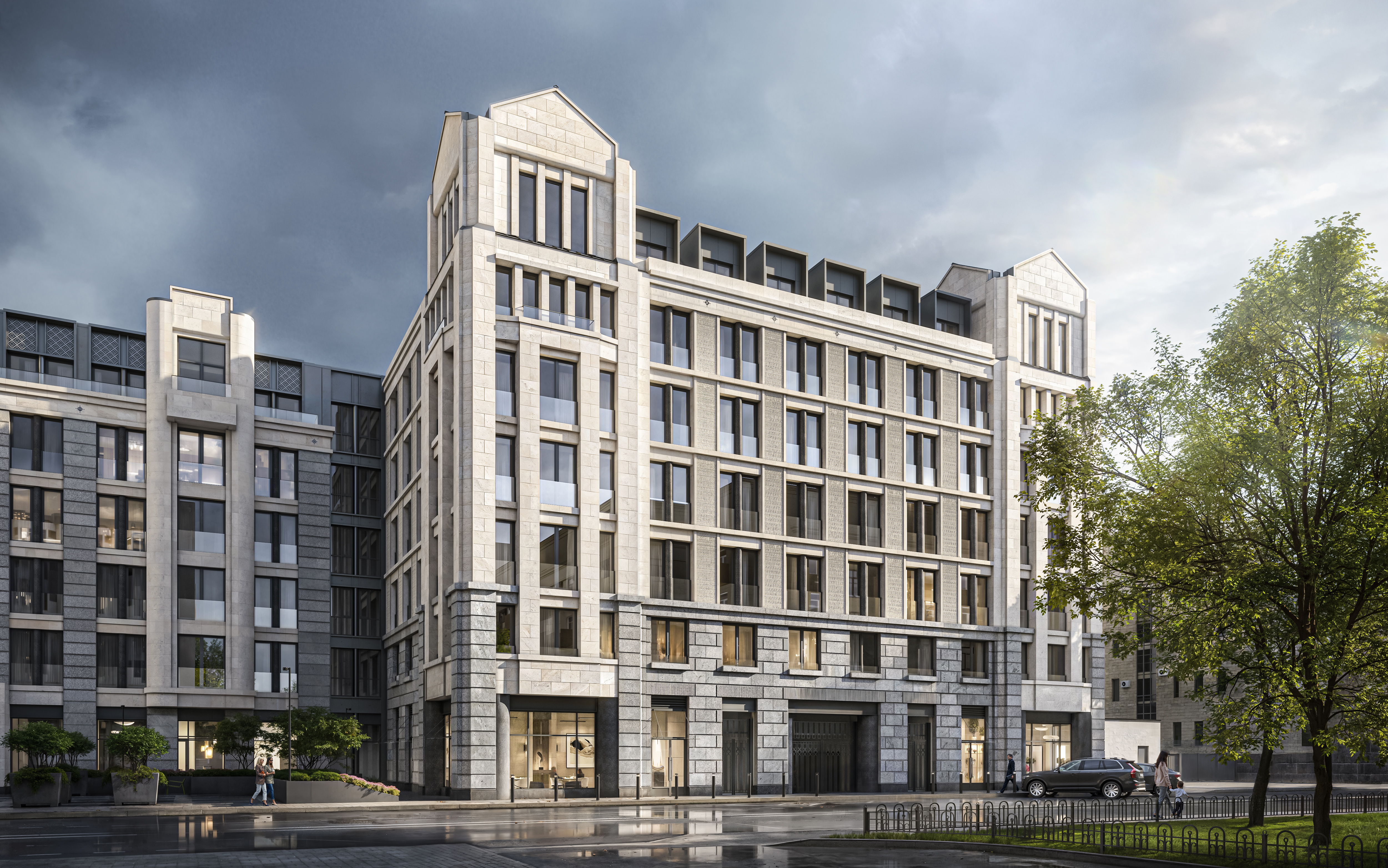 Клубный дом гармонирует с окружающими зданиями эпохи модерна.